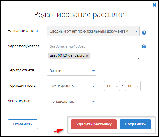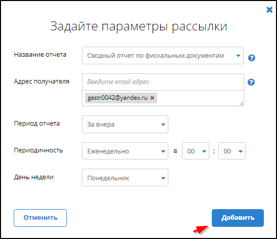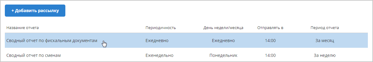 Примечание: Для каждого типа отчета можно добавить только одну рассылку.