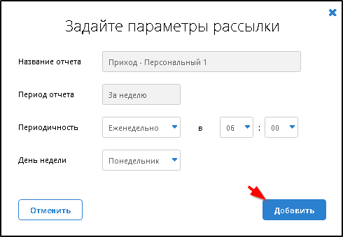 Для периодичного получения, можно настроить рассылку (кнопка "Настройка рассылки").