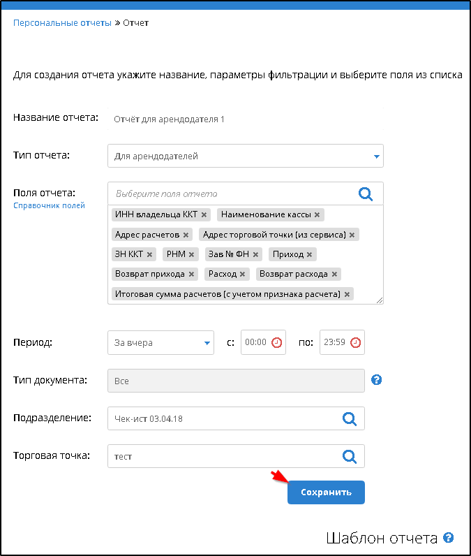 Определившись с параметрами отчета, следует нажать кнопку "Сохранить".