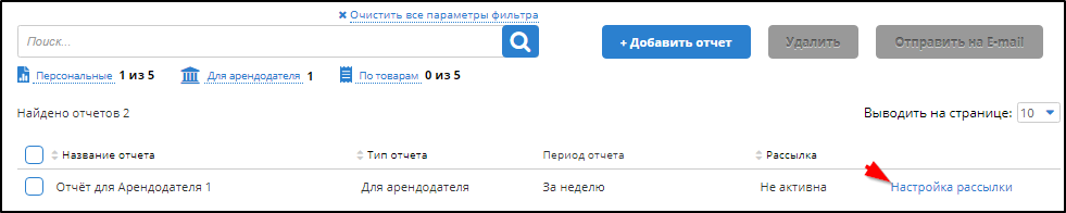 Для формирования необходимо нажать кнопку "+ Добавить отчет" и выбрать тип отчёта "Для арендодателей":