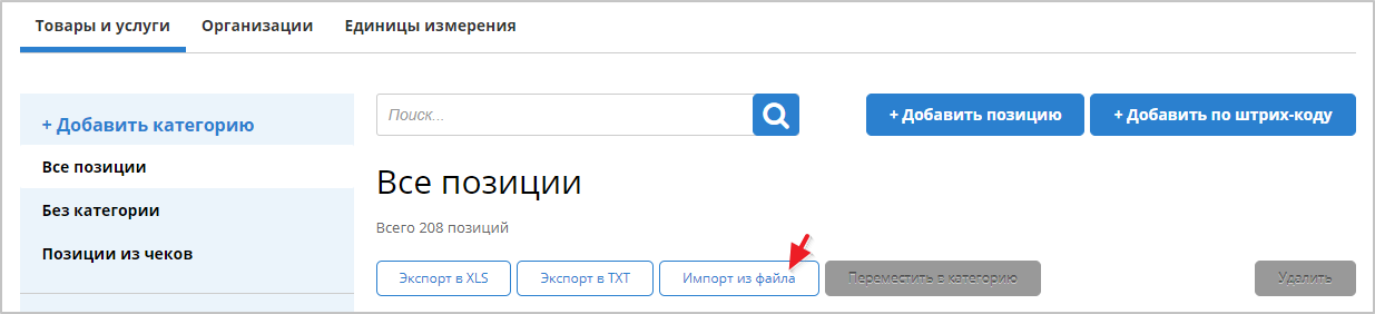 Для одновременного добавления большого количества сведений о товарных позициях предусмотрена возможность импорта данных из файла.