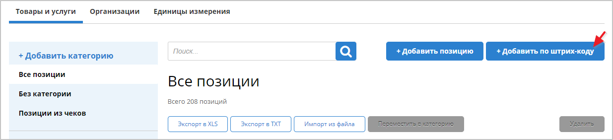 Чтобы добавить новую товарную позицию по штрих-коду, необходимо:
