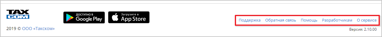 Для получения справочной информации, а также отправки в ООО "Такском" отзывов, вопросов и предложений по работе системы можно воспользоваться ссылками в нижней панели окна ПО "Такском-Касса".