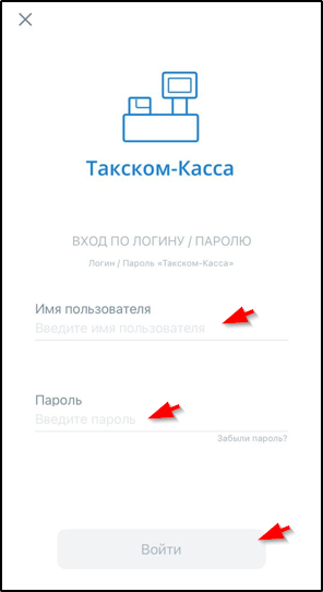 В случае нажатия кнопки "Логин / Пароль" откроется окно для ввода логина (в поле "Имя пользователя") и пароля: