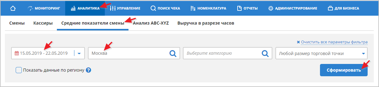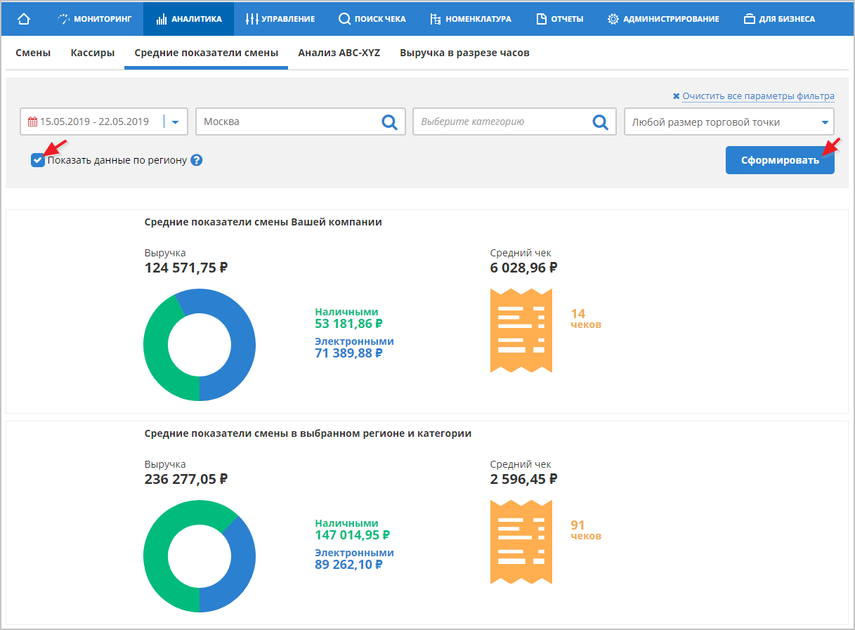 Информация о средних показателях доступна в разделе "АНАЛИТИКА" - "Средние показатели смены".